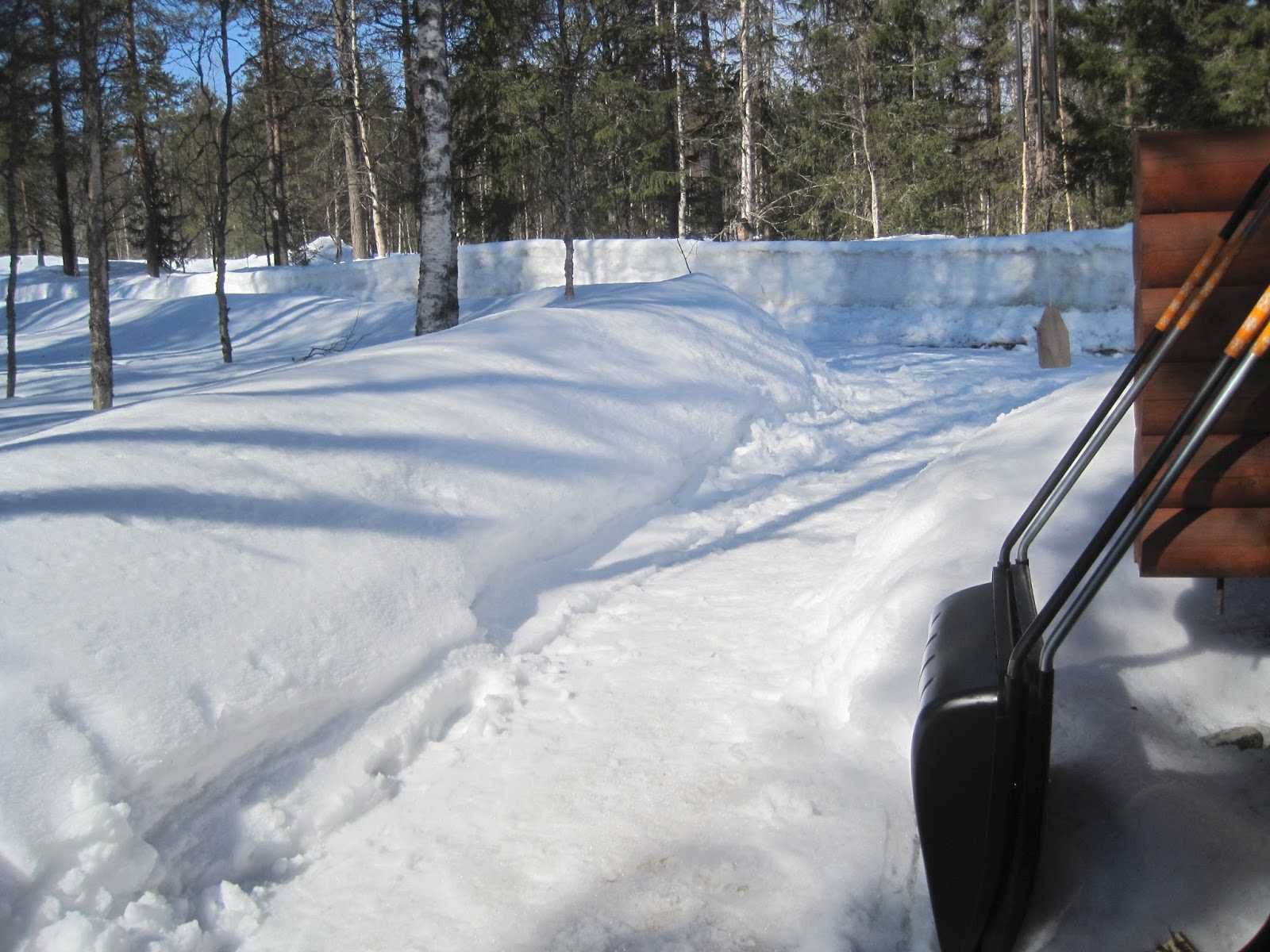 Nyt kotiin lapiomaan pyykkiteline vapaaksi talven kurimuksesta.